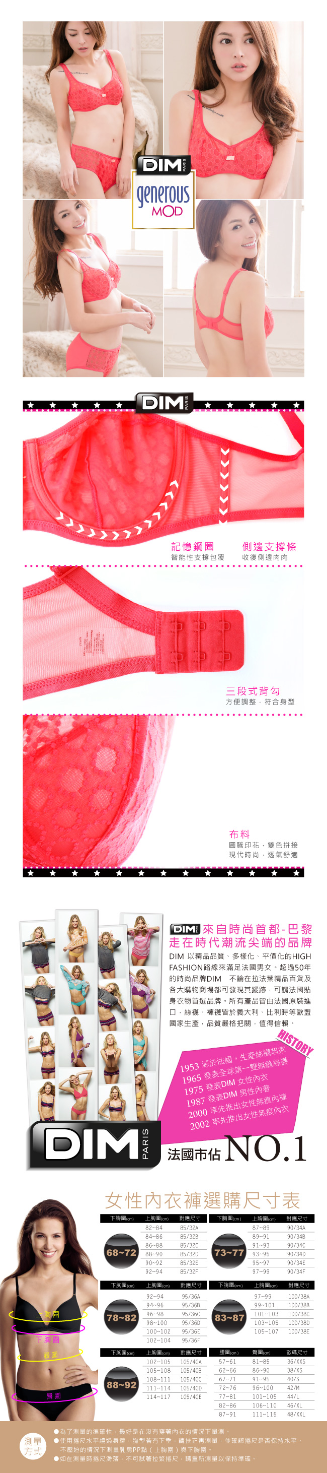 法國DIM-性感蕾絲設計款美胸內衣-紅